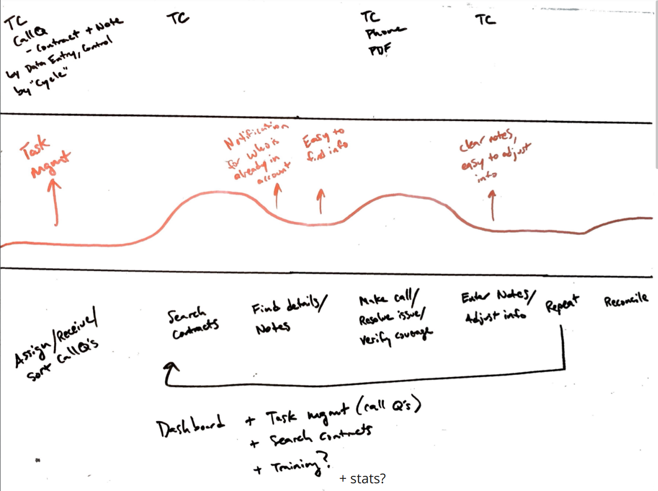 Scrappy whiteboarded Journey Map to help identify opportunities to improve the Call Center’s workflow.