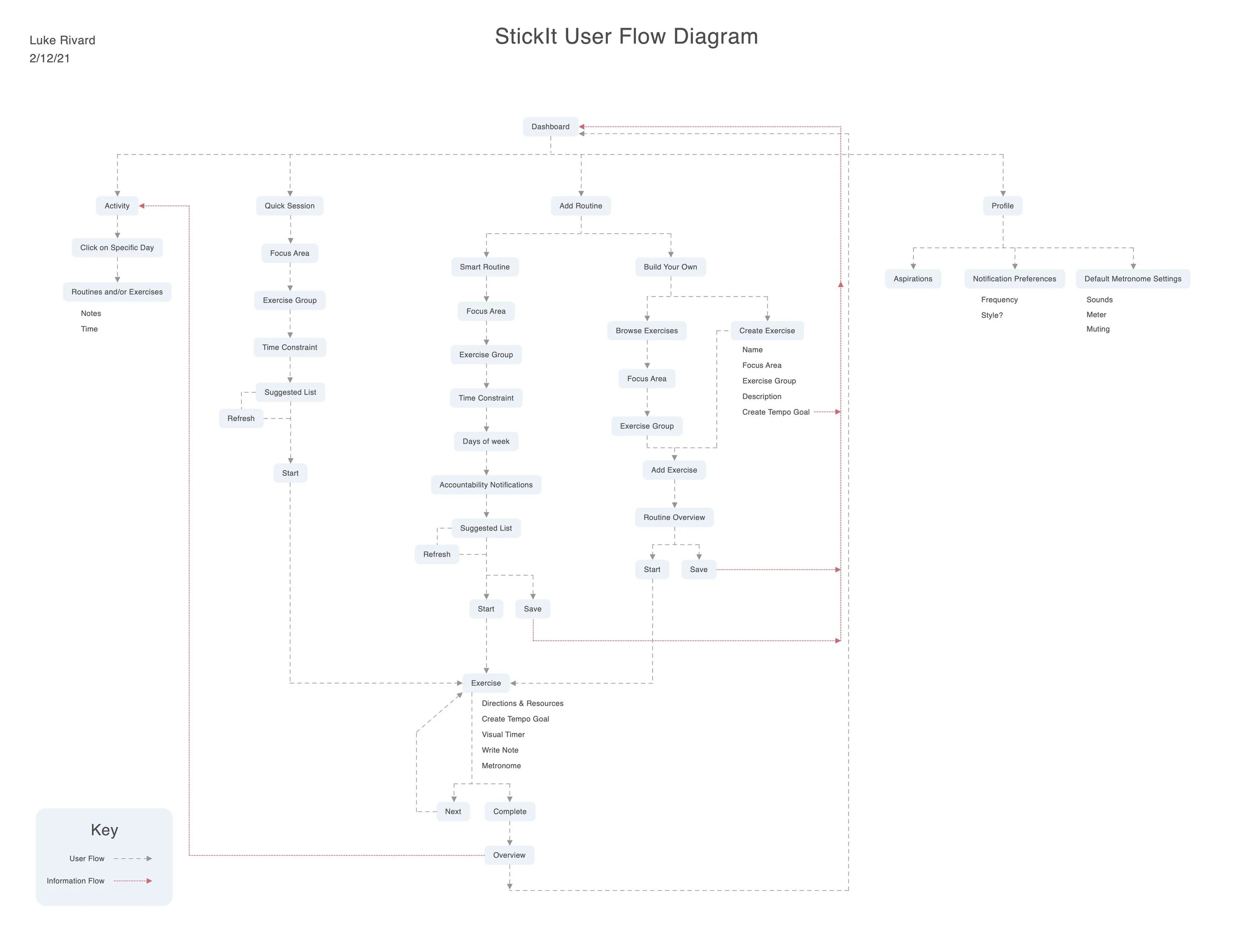 After multiple iterations of problem identification, I was able to confidently design a mobile app solution called StickIt that helps drummers decide what exercises to practice when they sit down at the drum set. This app also gives the user the ability to create their own exercises, routines, and goals. This concept project demonstrates that the design process is not linear and that it’s important to be able to pivot when working with imperfect data.